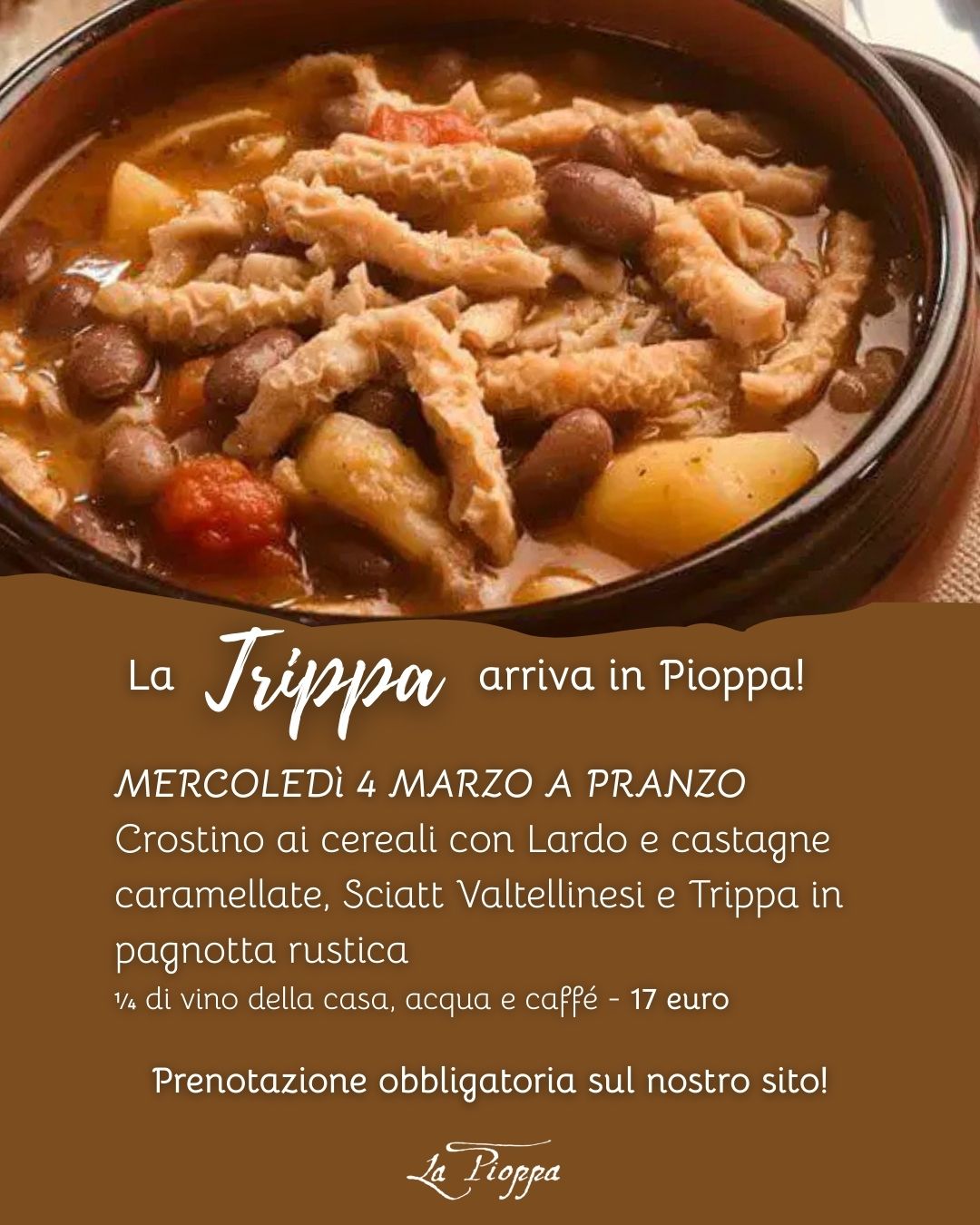 Crostino ai cereali con Lardo e castagne caramellate, Sciatt Valtellinesi e Trippa in pagnotta rustica