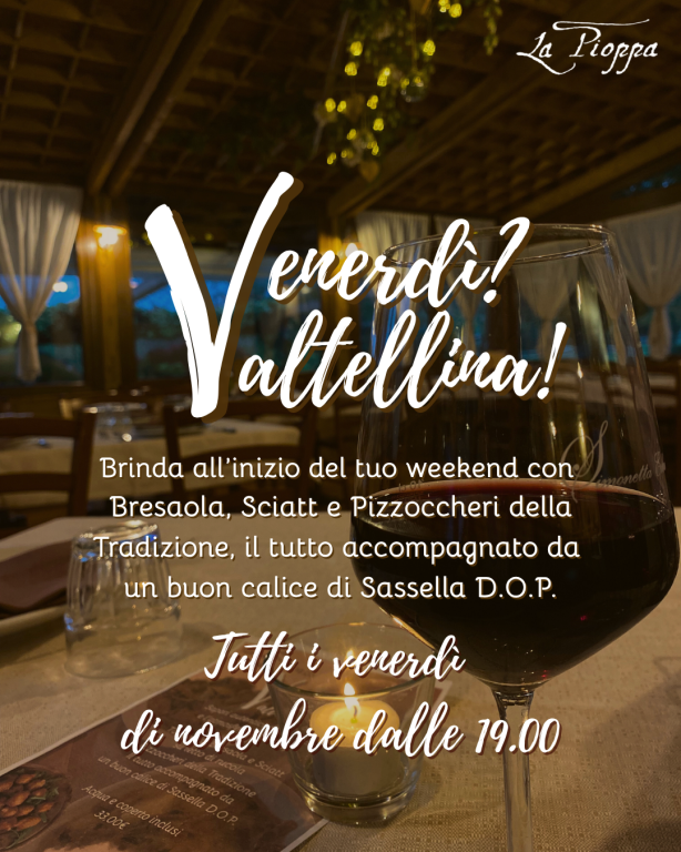Sapori autentici, vino buono e l’atmosfera della Pioppa...la nostra Valtellina ti aspetta tutti i Venerdi di Novembre !