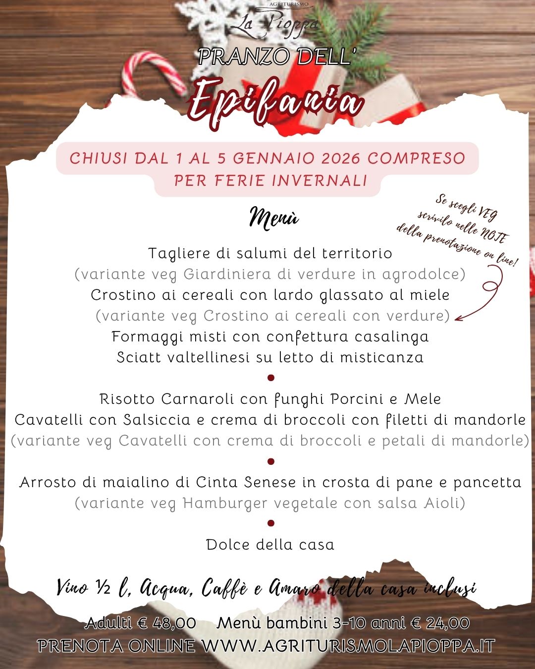 ⚠️dall'1 al 5 gennaio 2026 saremo CHIUSI per ferie invernali!❄️PRENOTA SOLO ON-LINE TRAMITE IL NOSTRO SITO nella sezione PRENOTA https://www.agriturismolapioppa.it/prenota